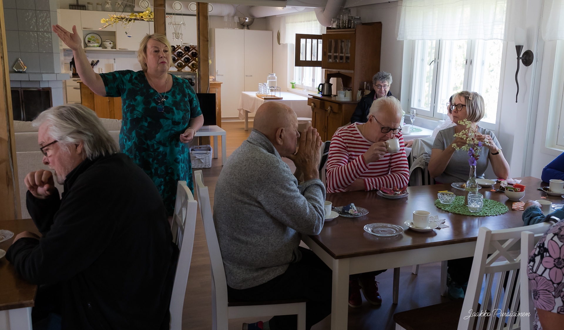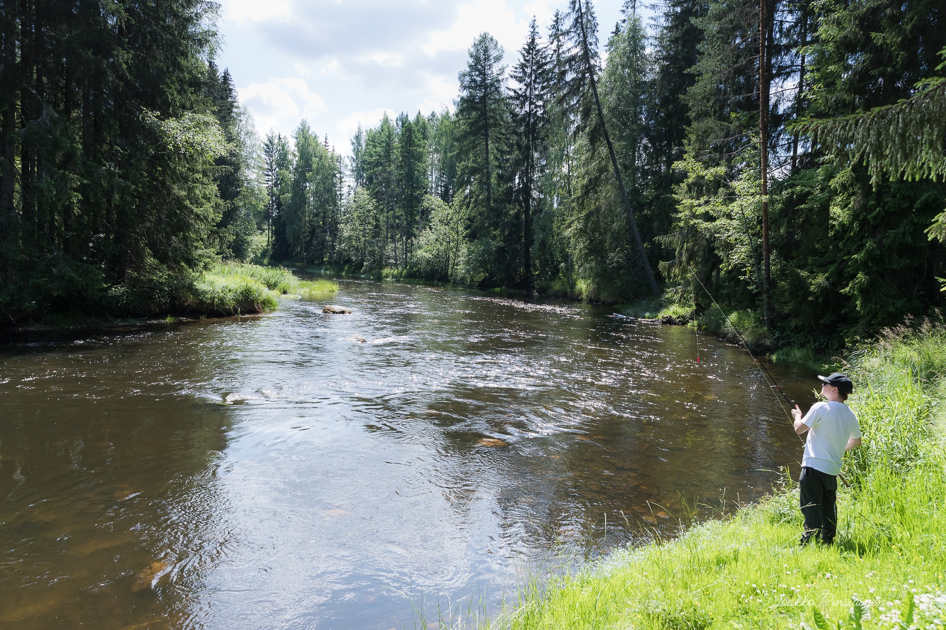 Museokierroksen jälkeen matka jatkui Hiitolanjoelle ja Kangaskoskelle, jossa retkeläisiä oli odottamassa välipala B&B Hiitolanjoen tiloissa. Myös Kangaskosken laavulle saatiin tulet sytytettyä ja samalla ihastella vapaanaa virtaavaa ja kuohuvaa Kangaskoskea ja Hiitolanjoen rauhoittavaa virtausta mukavan lempeässä kesäkelissä.